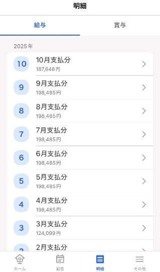 こうすると過去の給料明細まで簡単に確認することができます。
